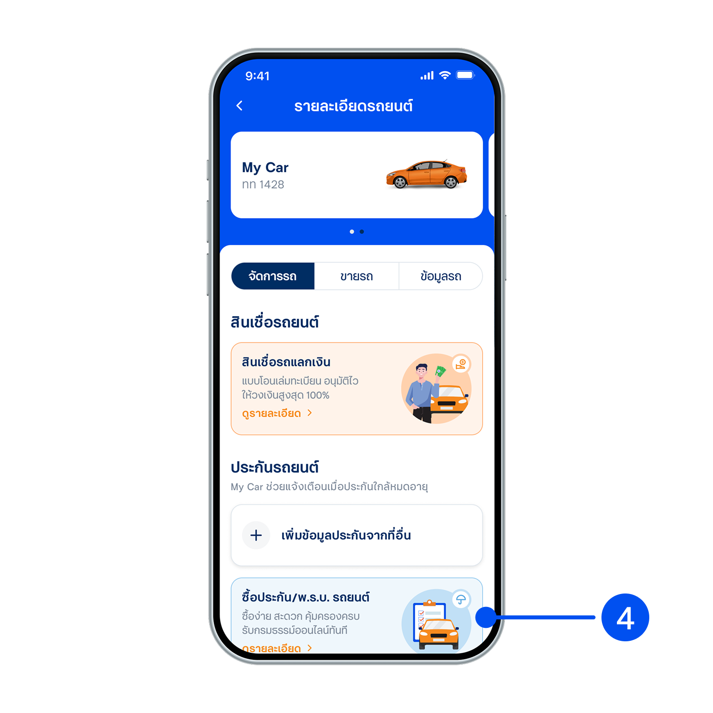 4. ใน “ประกันรถยนต์” เลือก “ซื้อประกัน/พ.ร.บ. รถยนต์”