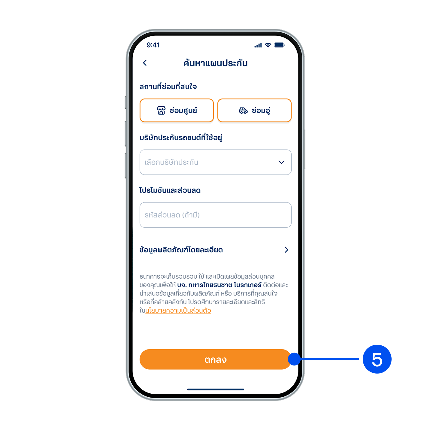 5. ใส่ข้อมูลเพื่อค้นหาแผนประกันให้ครบถ้วน แล้วกด “ตกลง”