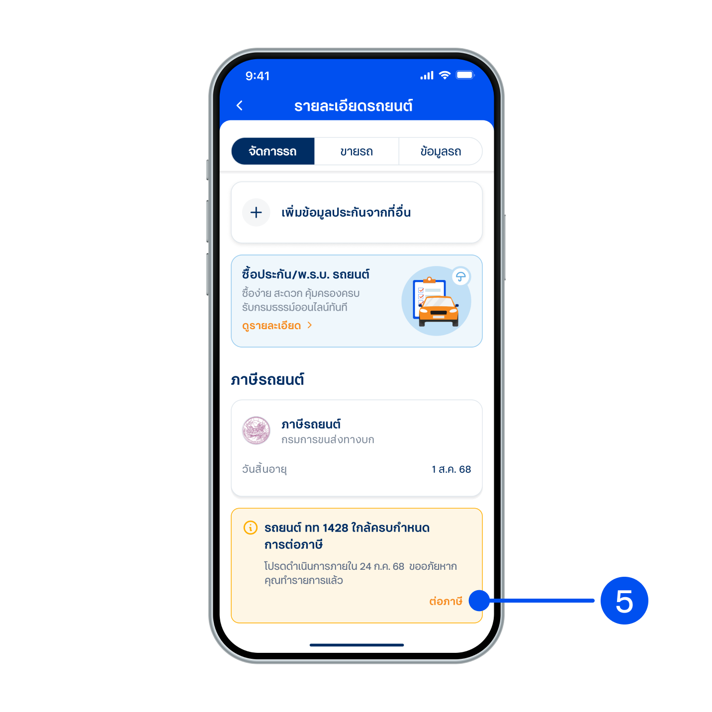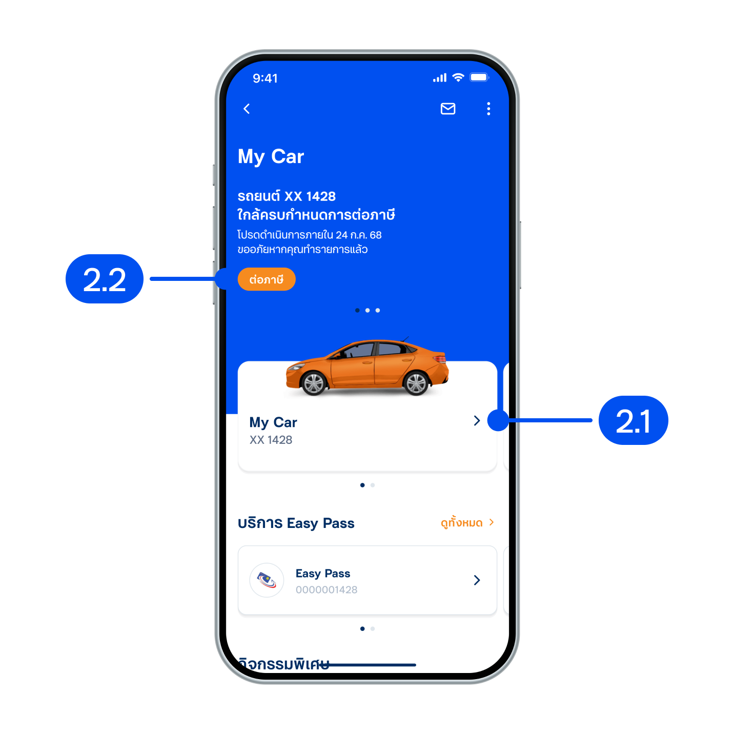 2.2 กดต่อภาษีจากข้อความต้อนรับ ในหน้าแรกของ My Car