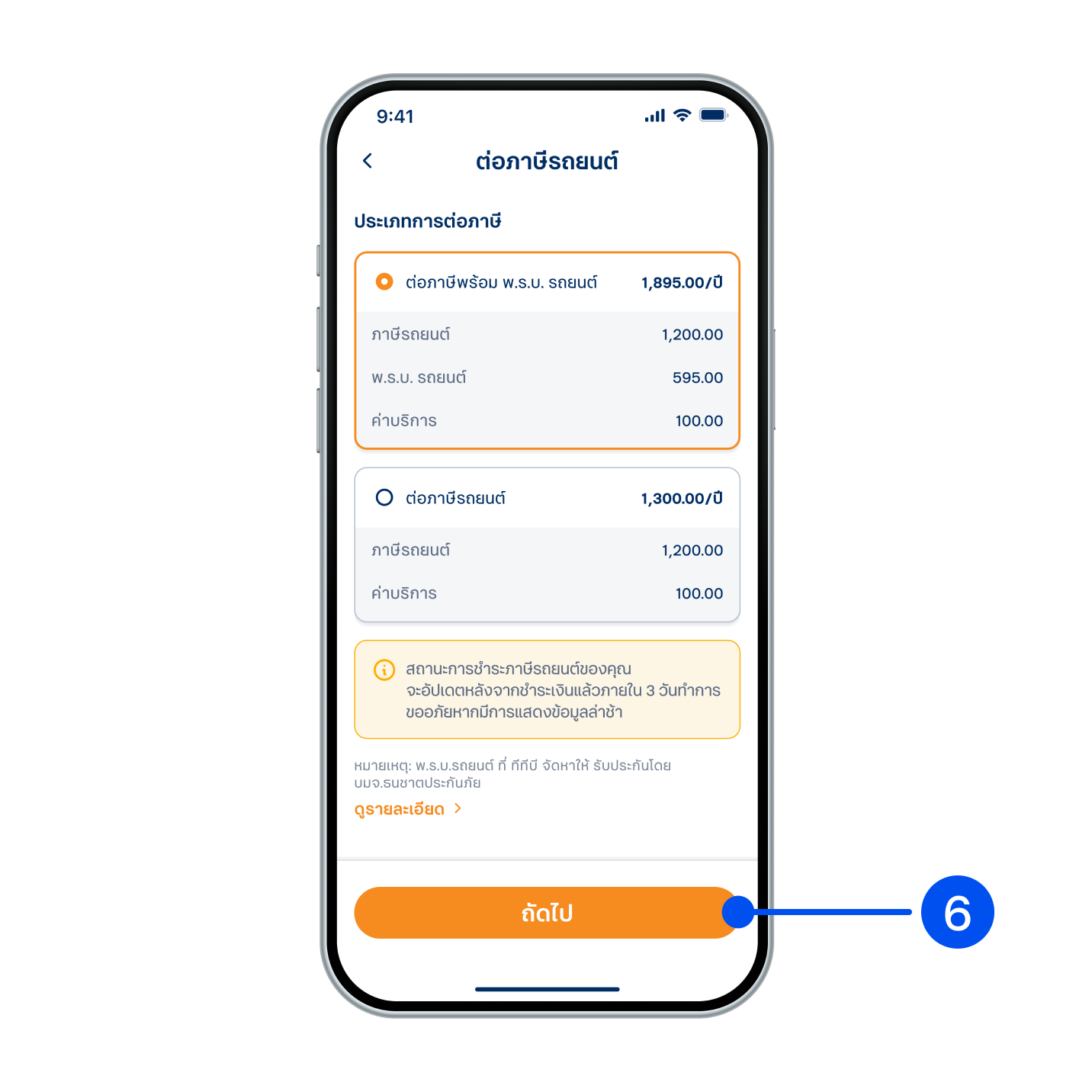 6. คุณสามารถเลือกต่อภาษีพร้อม พ.ร.บ หรือต่อภาษีอย่างเดียว