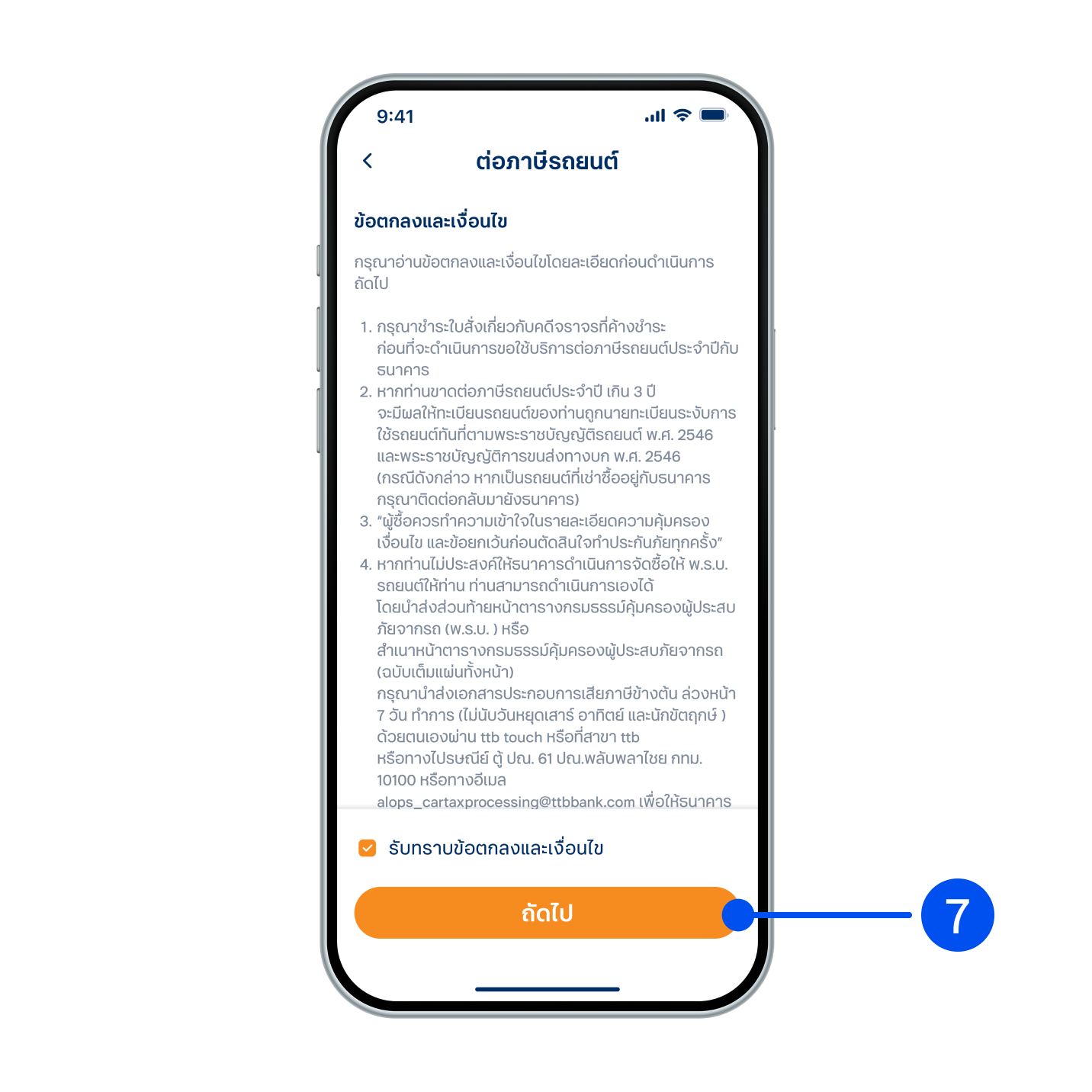 ยอมรับข้อตกลงและเงื่อนไข และกดถัดไป