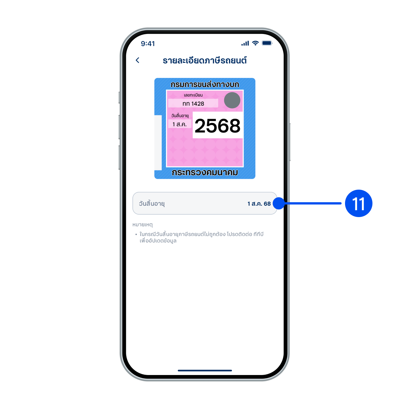 11. เมื่อการชำระภาษีสำเร็จ วันสิ้นอายุภาษีรถยนต์จะถูกอัปเดต