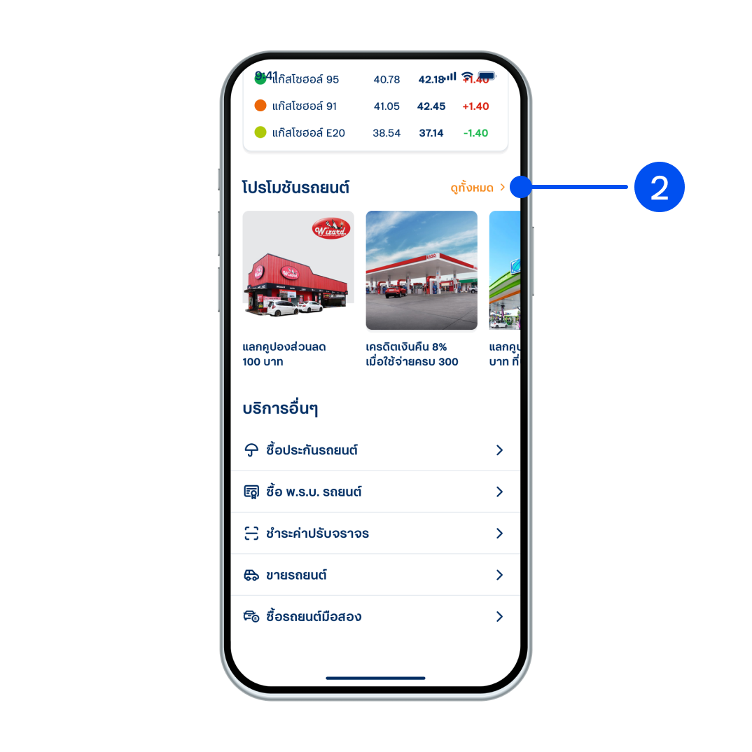 2. เลื่อนหน้าจอลงมาข้างล่าง ภายใต้ “โปรโมชันรถยนต์” กด “ดูทั้งหมด”