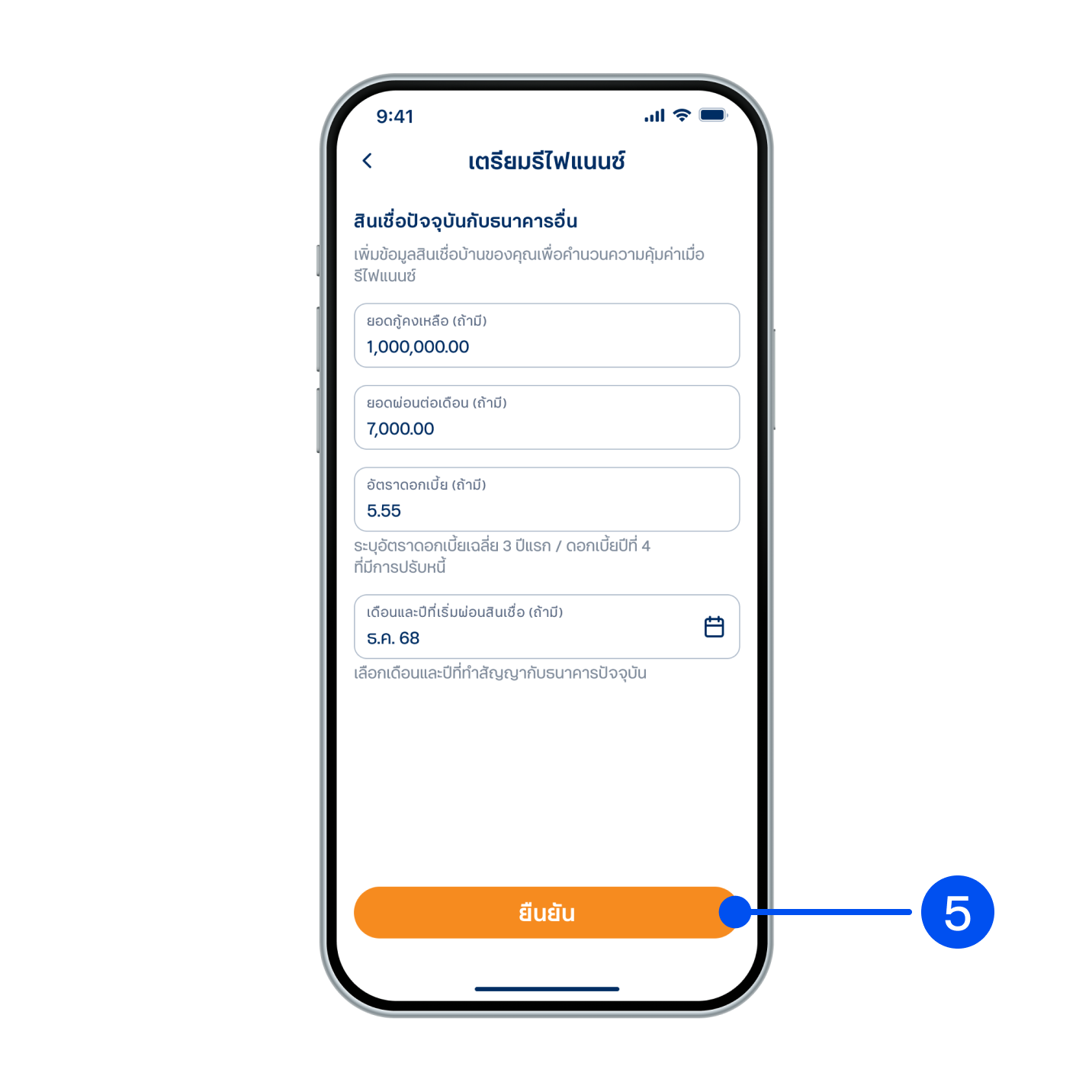 5. ใส่ข้อมูลสินเชื่อปัจจุบัน แล้วเลือก “ยืนยัน”