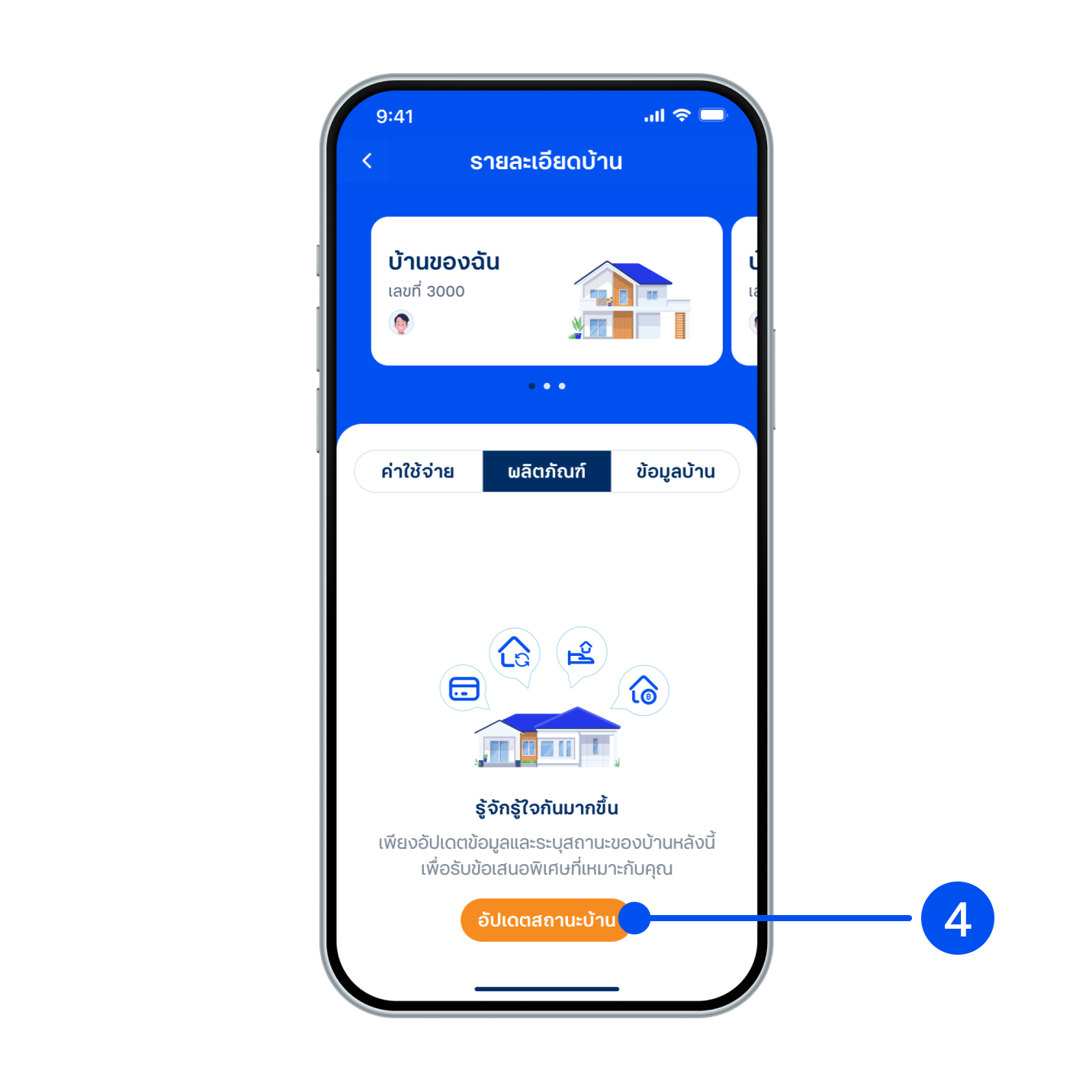 4. หากลูกค้ายังไม่เคยระบุสถานะบ้าน จะเจอหน้าการอัปเดตข้อมูลและระบุสถานะบ้าน โดยเลือก ”อัปเดตสถานะบ้าน”