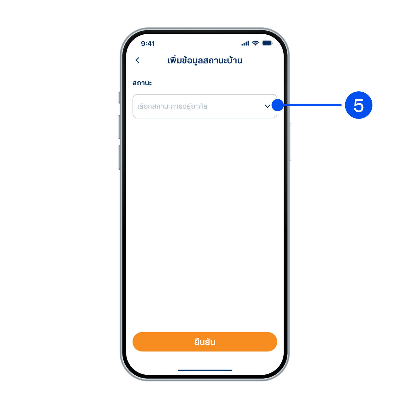 5. เข้าหน้าเพิ่มข้อมูลสถานะบ้าน เลือก “สถานะการอยู่อาศัย” เป็น “เจ้าของ”