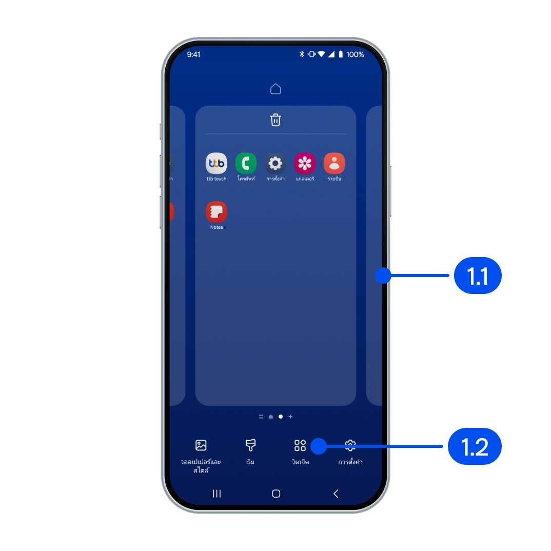 1.1) แตะหน้าจอค้างไว้
