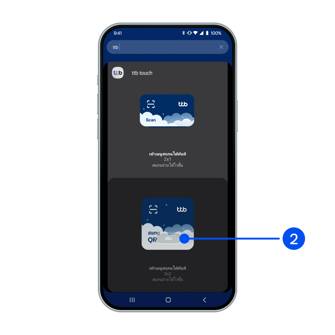 2. พิมพ์ “ttb touch” ในช่องค้นหาวิดเจ็ต