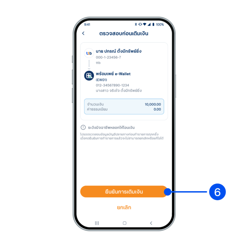 “ยืนยันการเติมเงิน”