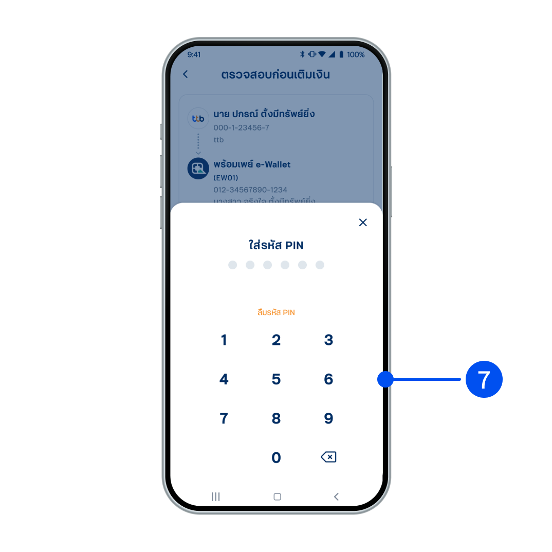 7. ใส่รหัส PIN เพื่อยืนยันการทำรายการ