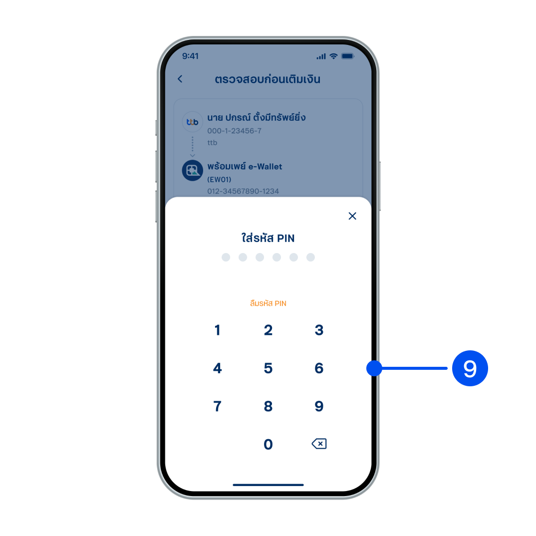 9. ใส่รหัส PIN เพื่อยืนยันการทำรายการ