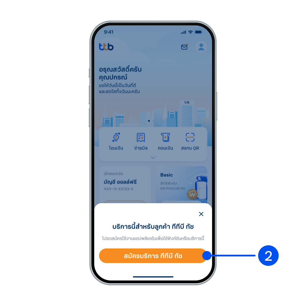 1. เลือก “สมัคร ทีทีบี ทัช”