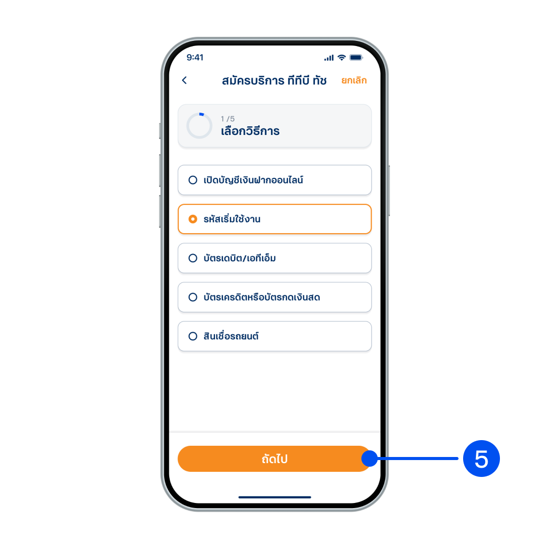 5. เลือกวิธีการสมัคร ทีทีบี ทัช จากนั้นเลือก “ถัดไป”