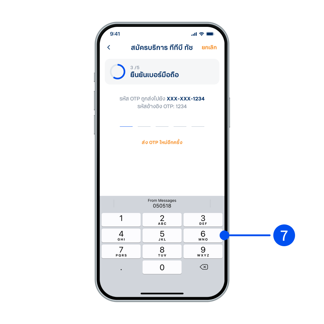 7. ใส่ OTP ที่ได้รับจาก SMS